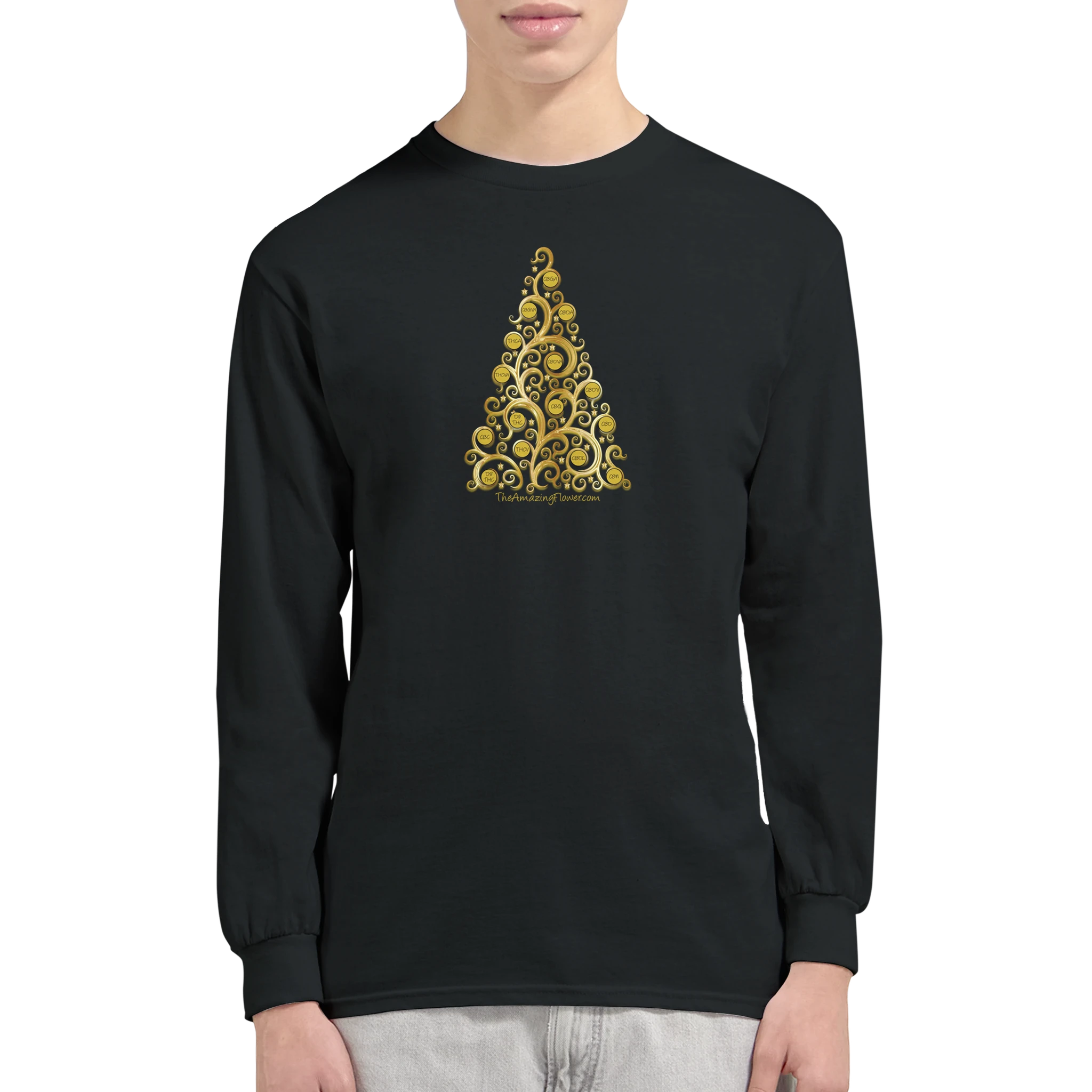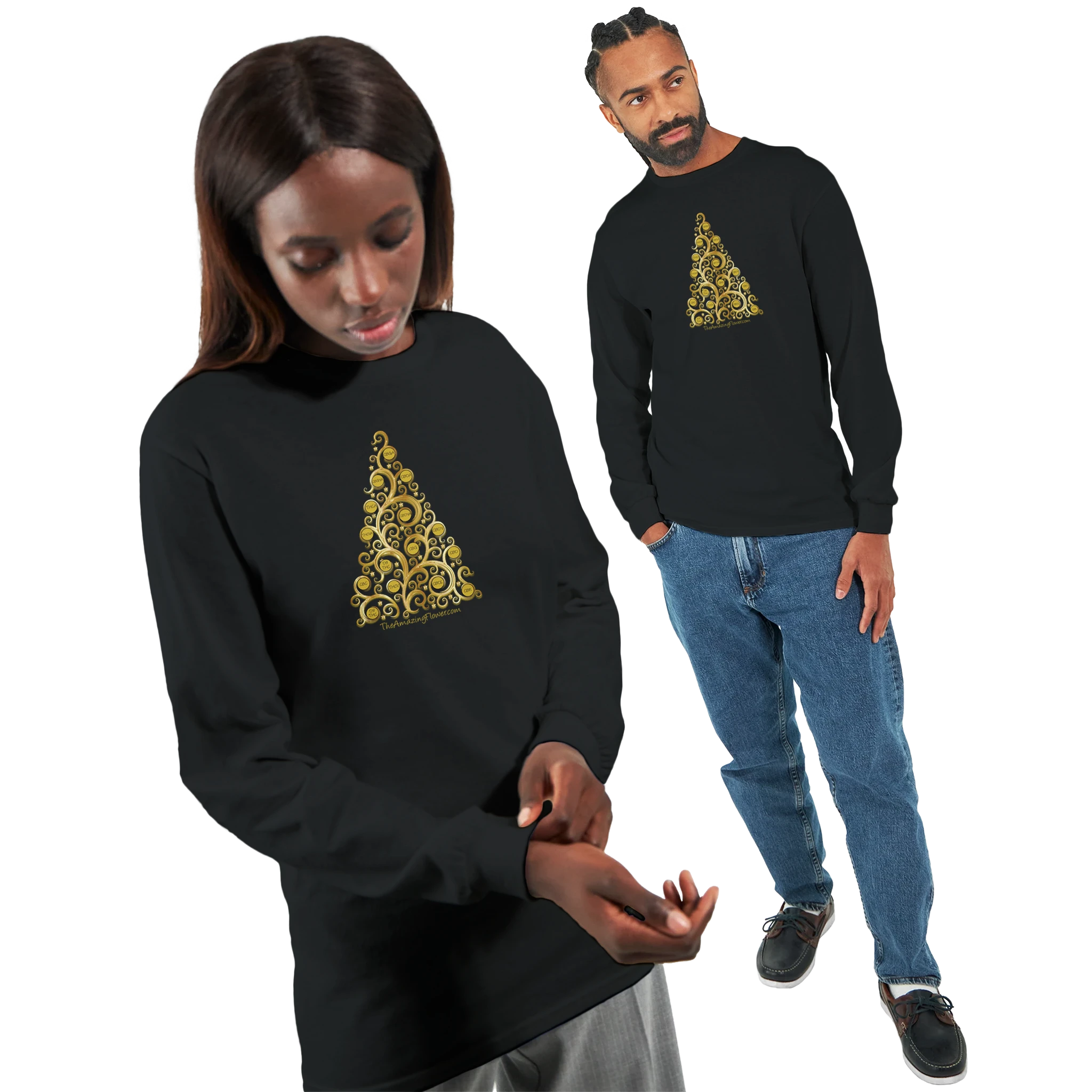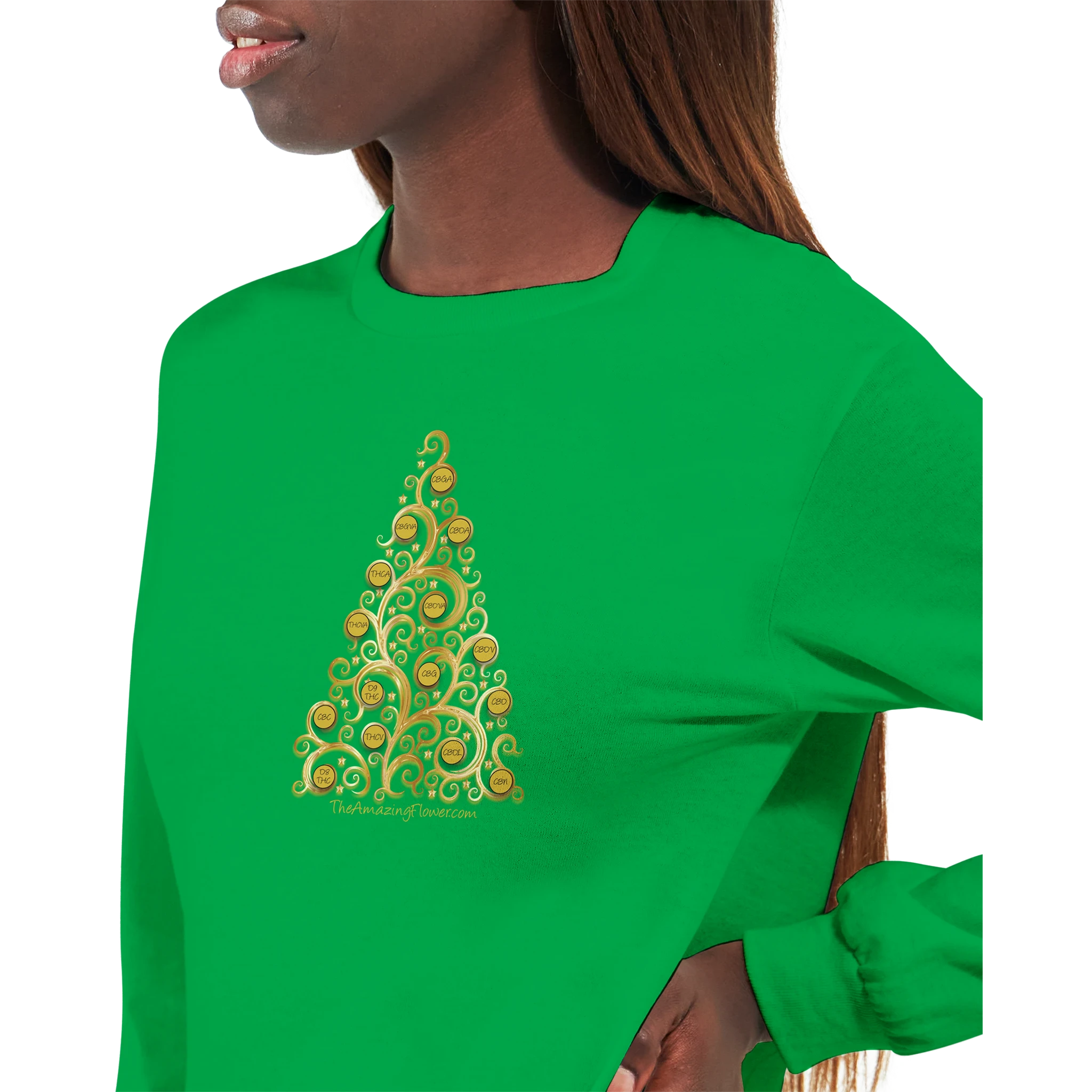 Elegant Gold Holiday Tree Long-Sleeve T-Shirt with Cannabinoid Ornaments