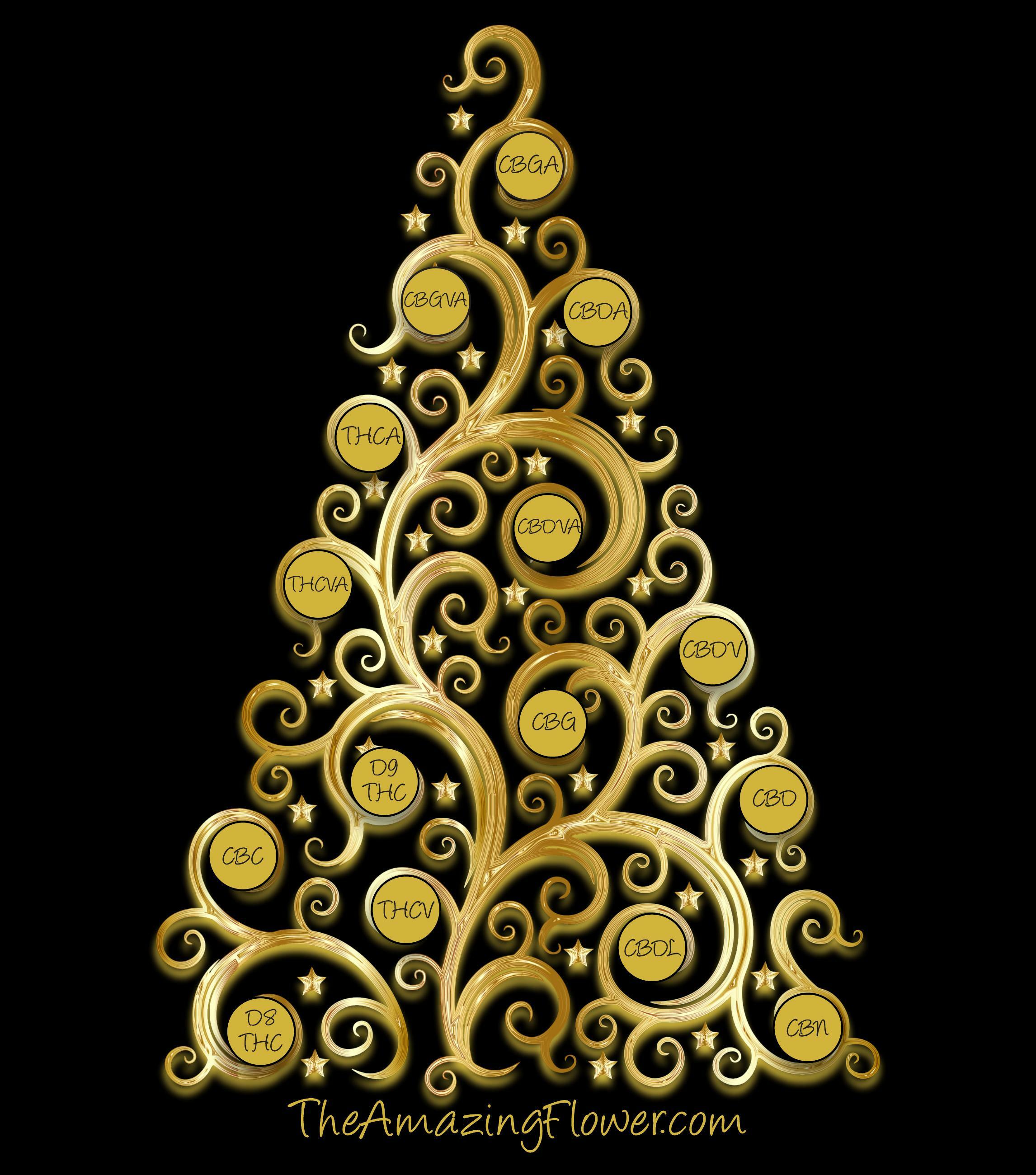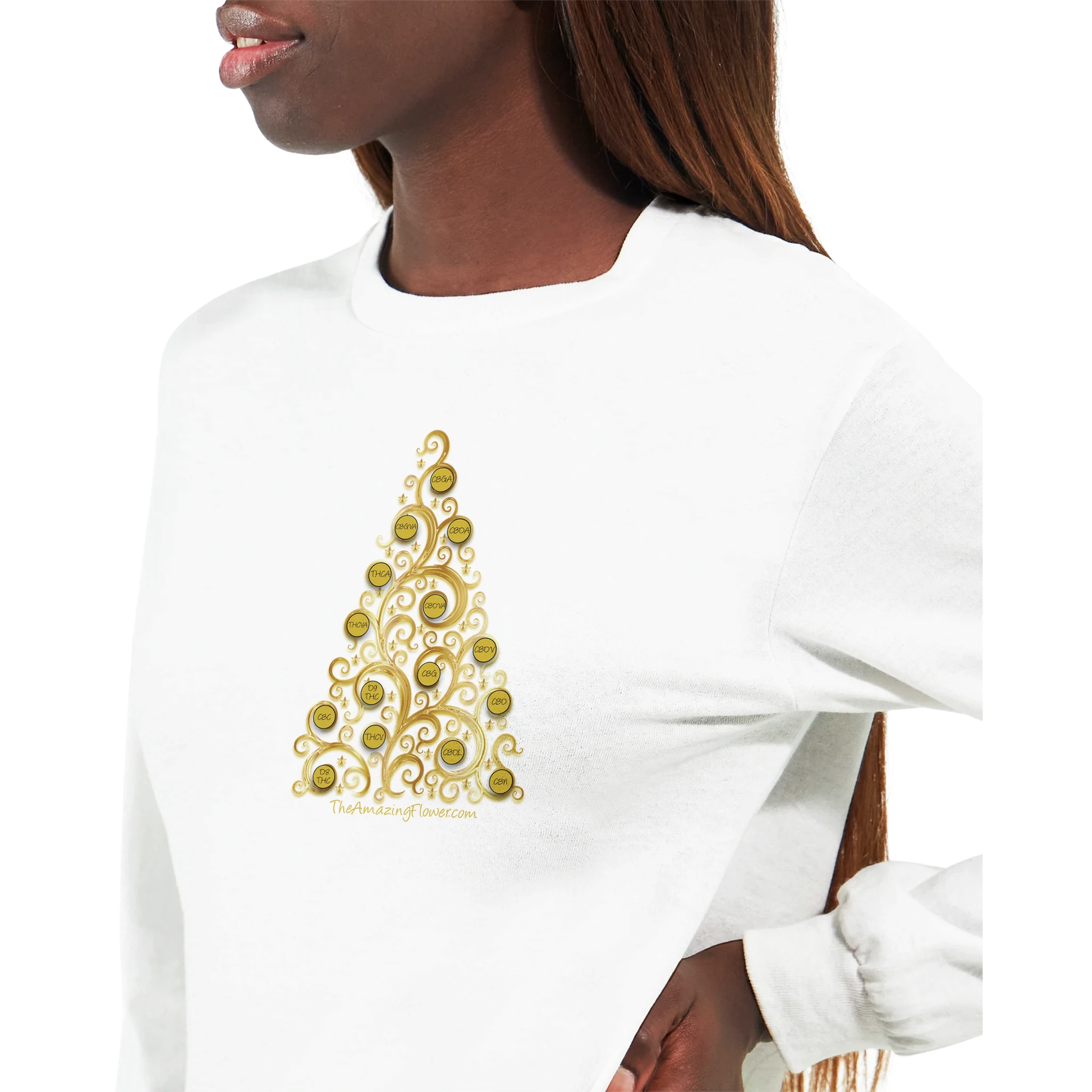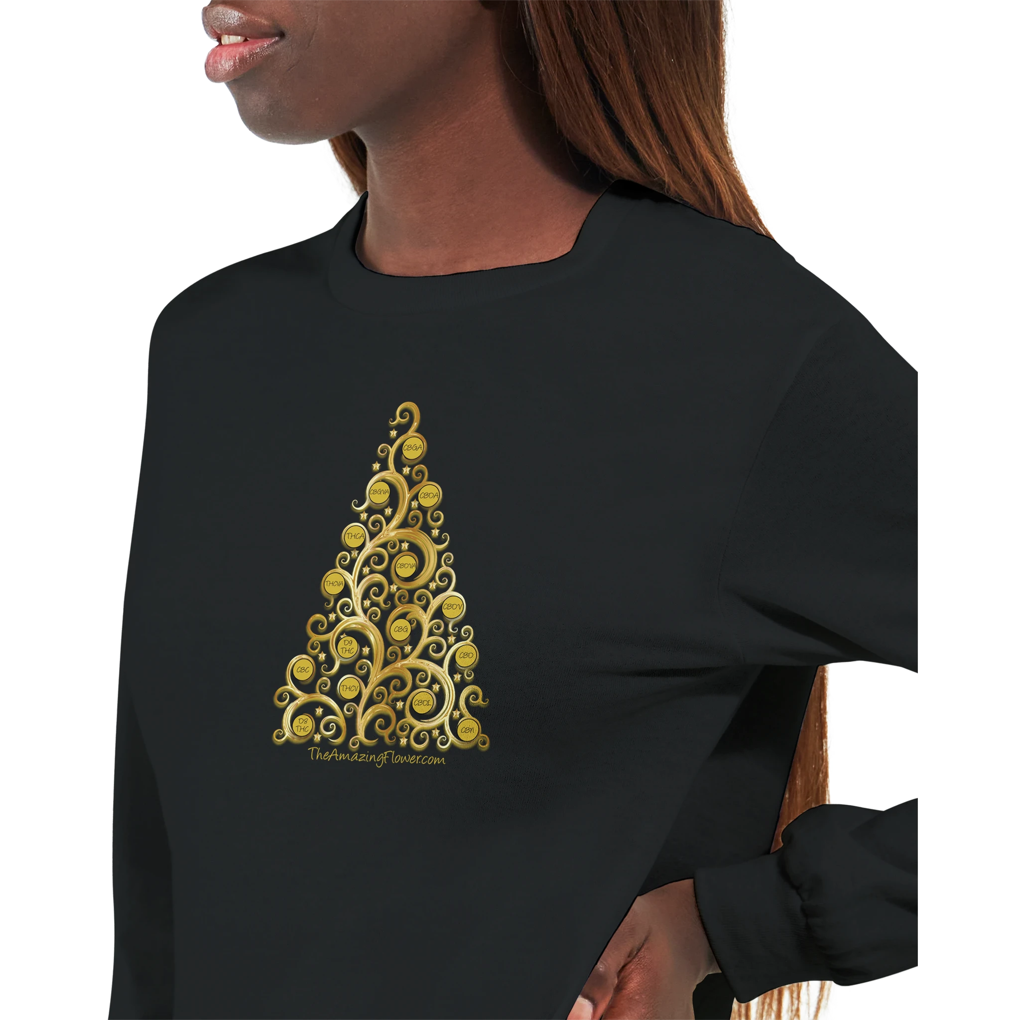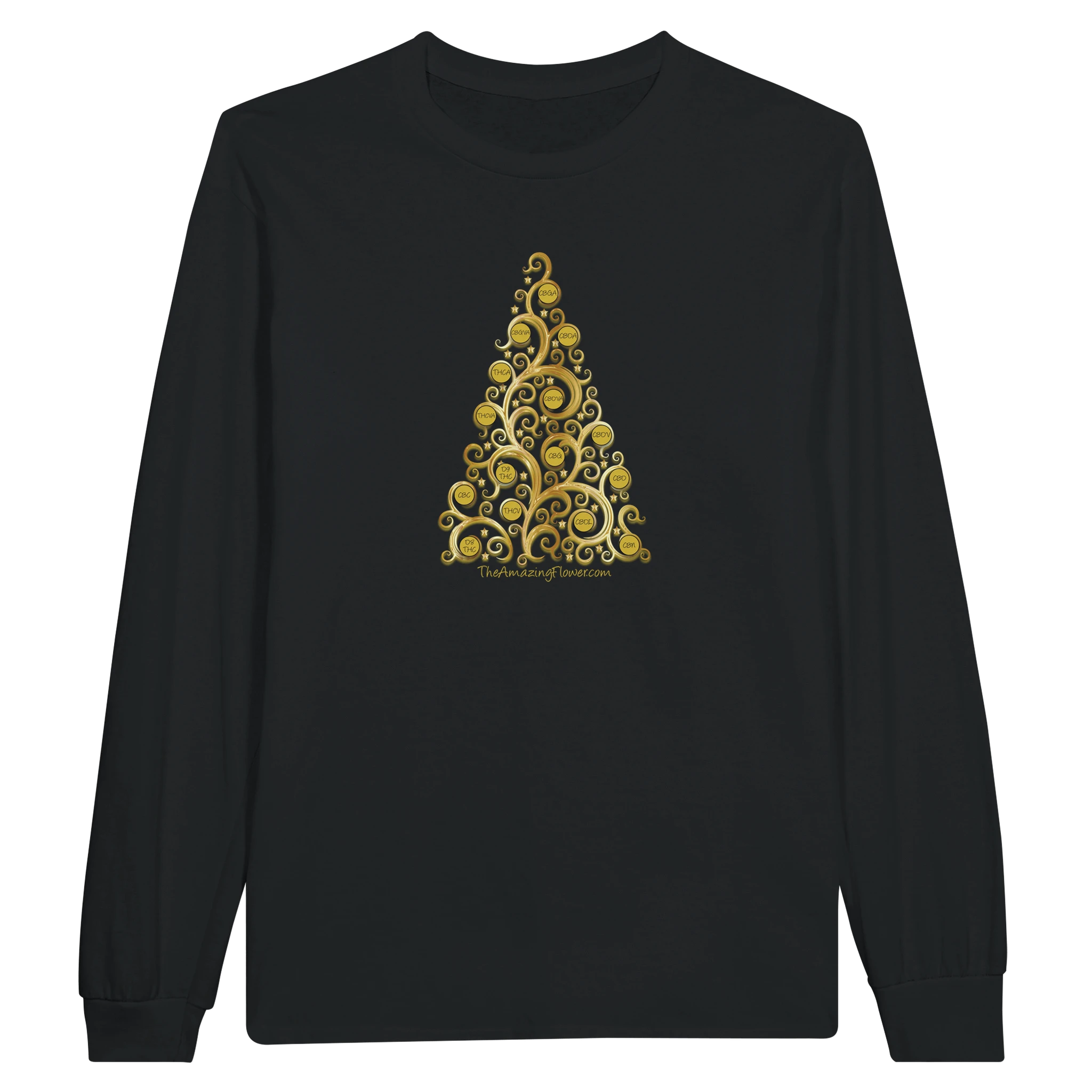 Elegant Gold Holiday Tree Long-Sleeve T-Shirt with Cannabinoid Ornaments